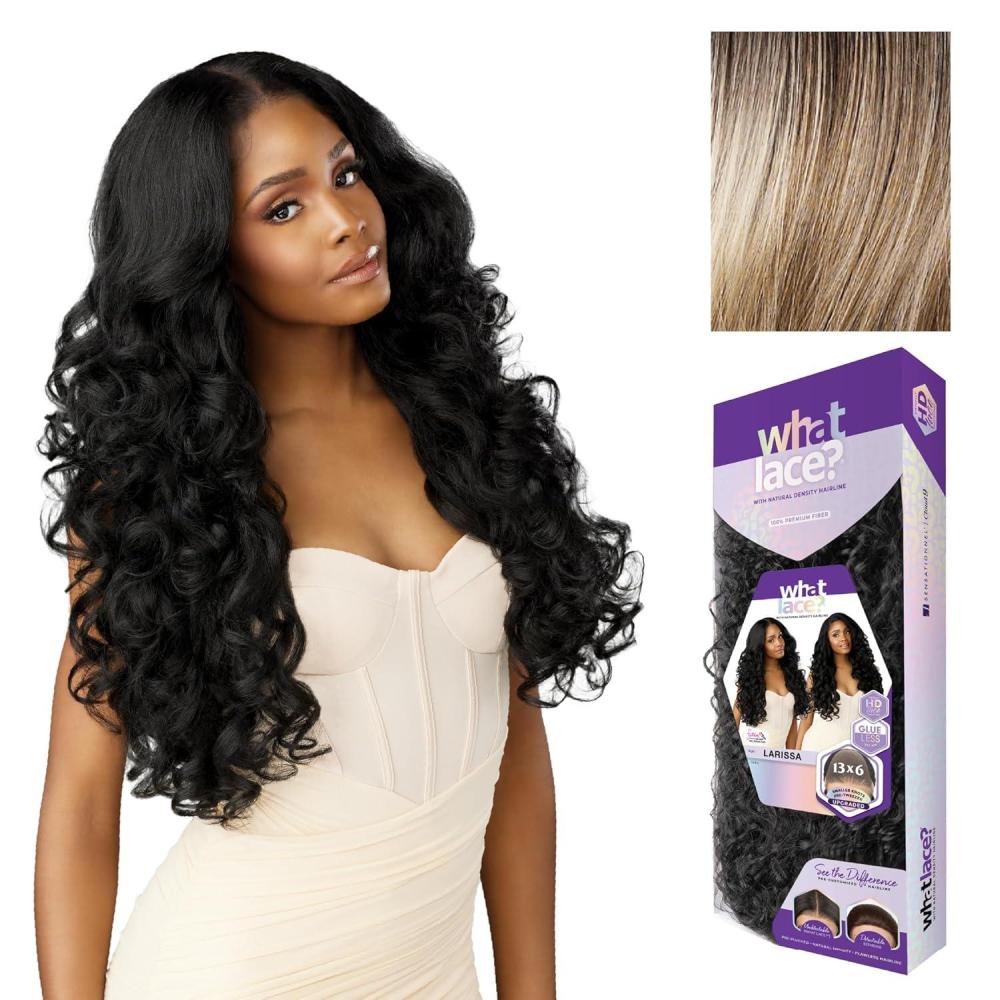 Sensationnel What Lace 13X6 Wig – Larissa Lacefrontal Hand Tied Glueless Synthetic with Natural Density Preplucked Hairline (1 JETBLACK)(BALAYAGEASHBLONDE)