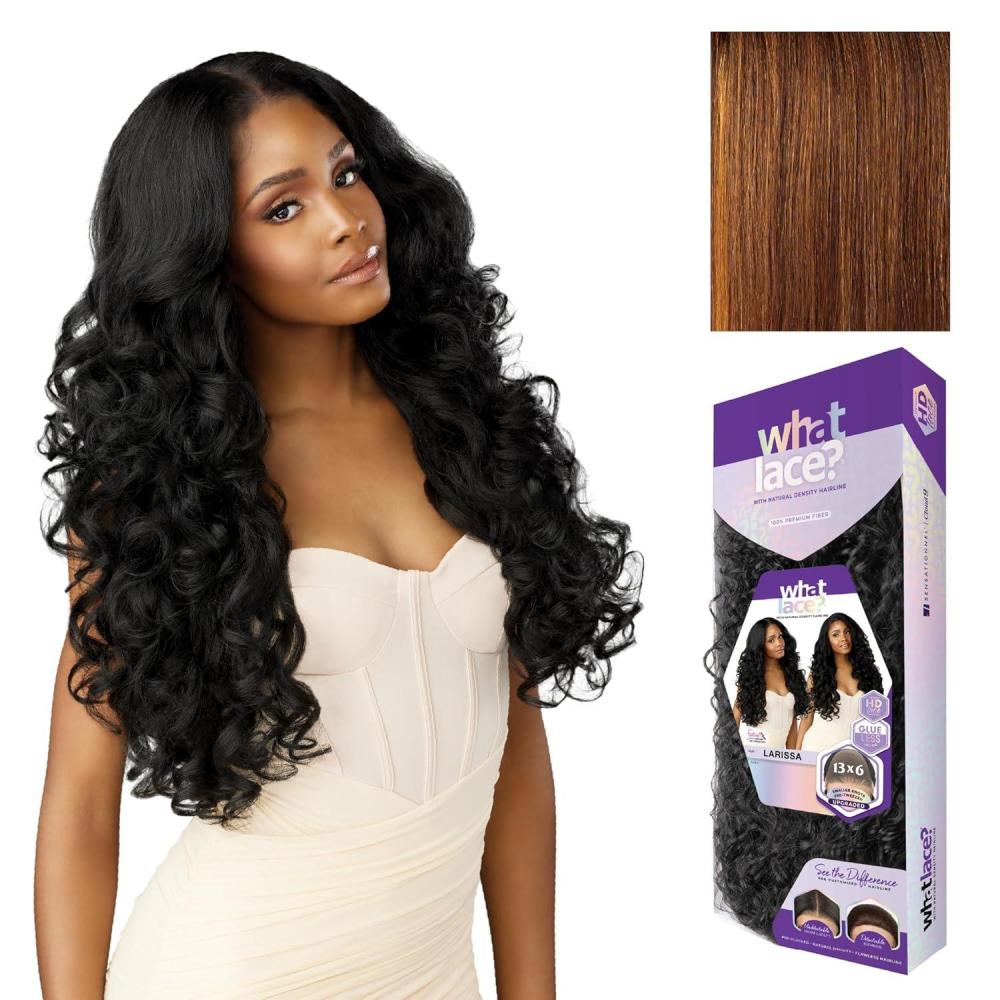 Sensationnel What Lace 13X6 Wig – Larissa Lacefrontal Hand Tied Glueless Synthetic with Natural Density Preplucked Hairline (1 JETBLACK)(BALAYAGEAUBURN)