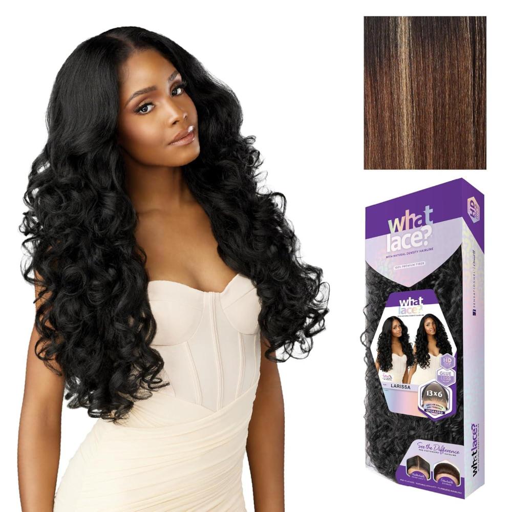 Sensationnel What Lace 13X6 Wig – Larissa Lacefrontal Hand Tied Glueless Synthetic with Natural Density Preplucked Hairline (1 JETBLACK)(BALAYAGEAUBURN)